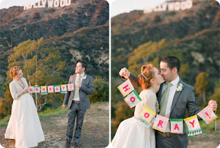 + a bride with gorgeous red hair, an adorable cardigan, and the hollywood sign as the backdrop